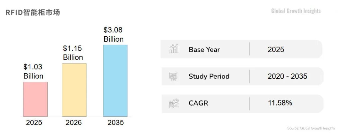 这组数据清晰地表白,这一布景下,全球RFID智能柜市场规模正在2025年达到了10.3亿美元,到2035年达到30.8亿美元,
